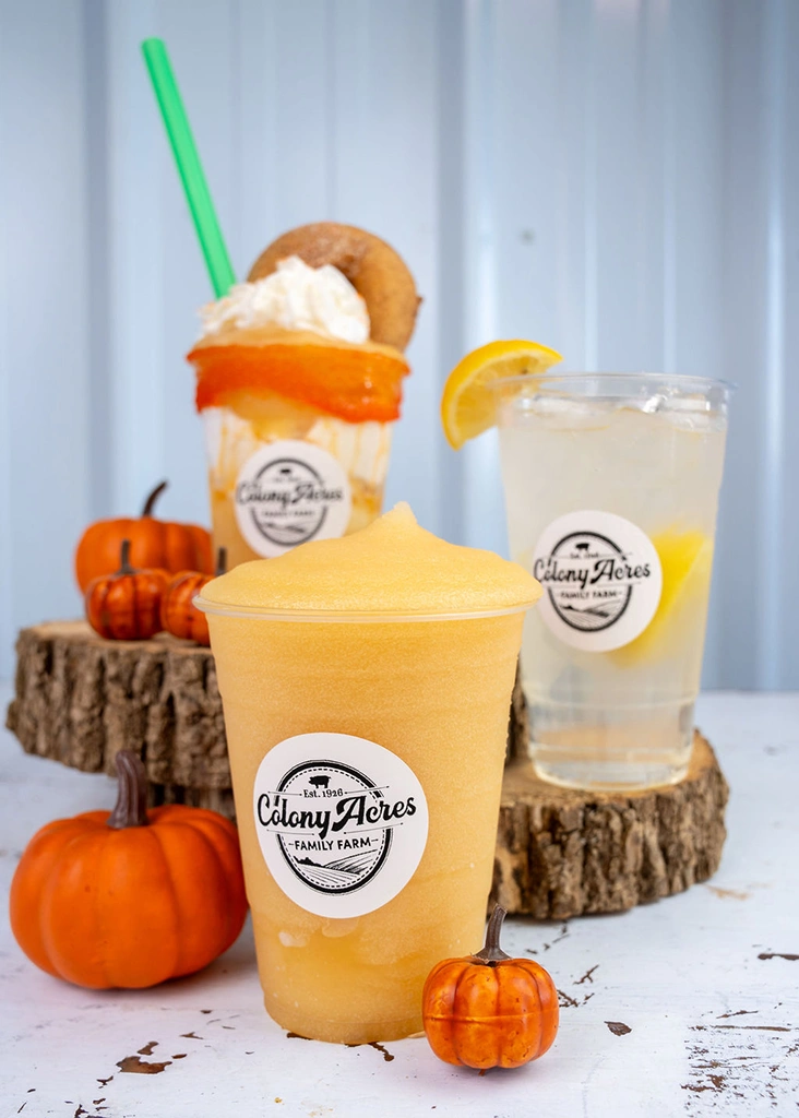 You’ll be building up an appetite during your day at Colony Acres, picking pumpkins, maneuvering the maze, and challenging yourself on the jump pillow and other activities. Stop by the Sweet Shop for doughnuts, slushies, and more. Grab more of these farm goodies to take home, including home-baked breads, Dean’s famous Pumpkin Bars, & homemade kettle corn. Canned and draft alcoholic beverages can also be found here! Stop back often to try out one of the craft beers or hard ciders currently on rotation!